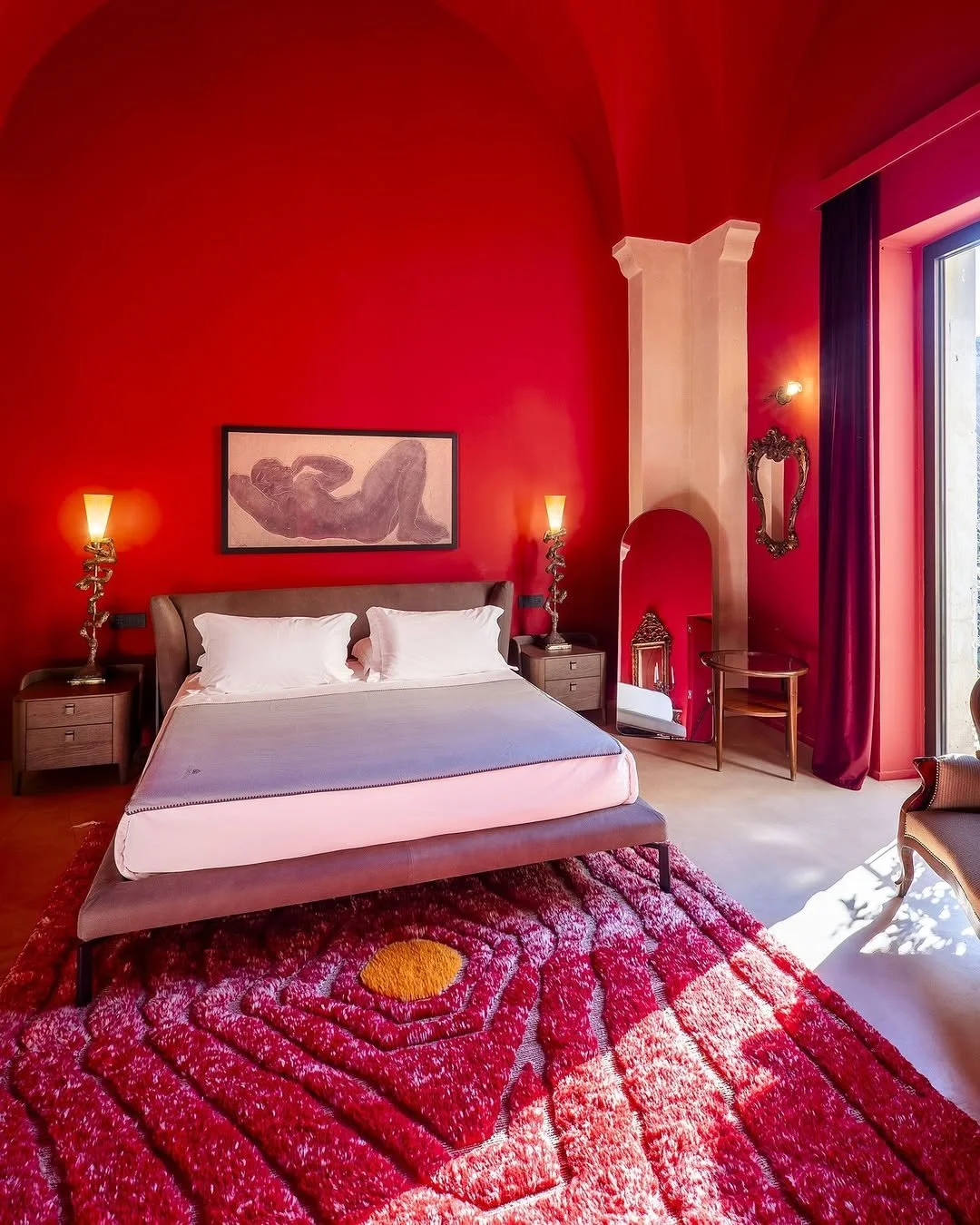 Spend the night at the Fiermonte Museum in Lecce and sleep amongst vaulted ceilings, rare books, and artworks by Antonia Fiermonte, Jacques Zwobada, René Letourneur, and other great artists. The private palazzo turned living gallery invites guests to immerse themselves in a curated world of art and design. The ground floor is open to the public as a museum space, featuring both permanent and rotating exhibitions. Upstairs, the hotel unfolds over three floors with four suites, each themed around a different art form: painting, sculpture, music, and film. For a luxe experience, consider booking the Marbre Suite on the top floor; dedicated to sculpture, it features striking art pieces, powder green walls, and an expansive private terrace and jacuzzi. Even if you don’t plan on staying, we still recommend visiting the space, which also hosts cooking classes and events.